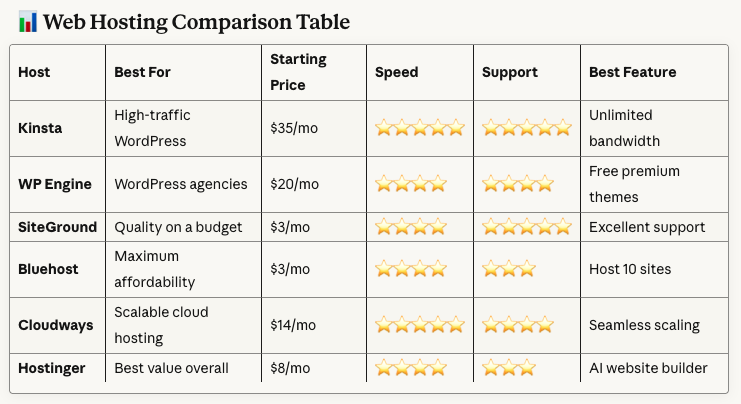 Just starting out? β Go with Hostinger ($8/mo) for incredible value
